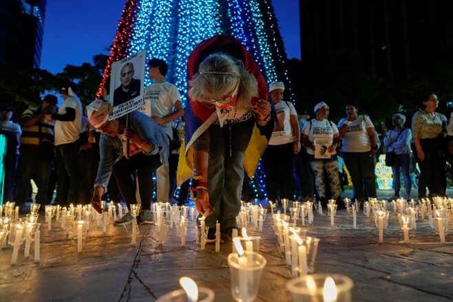 Relatives of political prisoners light candles during a vigil