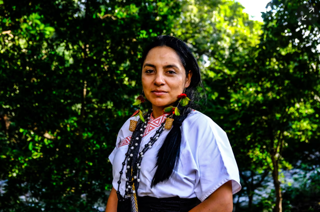 Indigenous leader Ati Quigua says local people have been put under curfew by violent groups who want to use their land as a drug-trafficking corridor. Photo credit: Harriet Barber